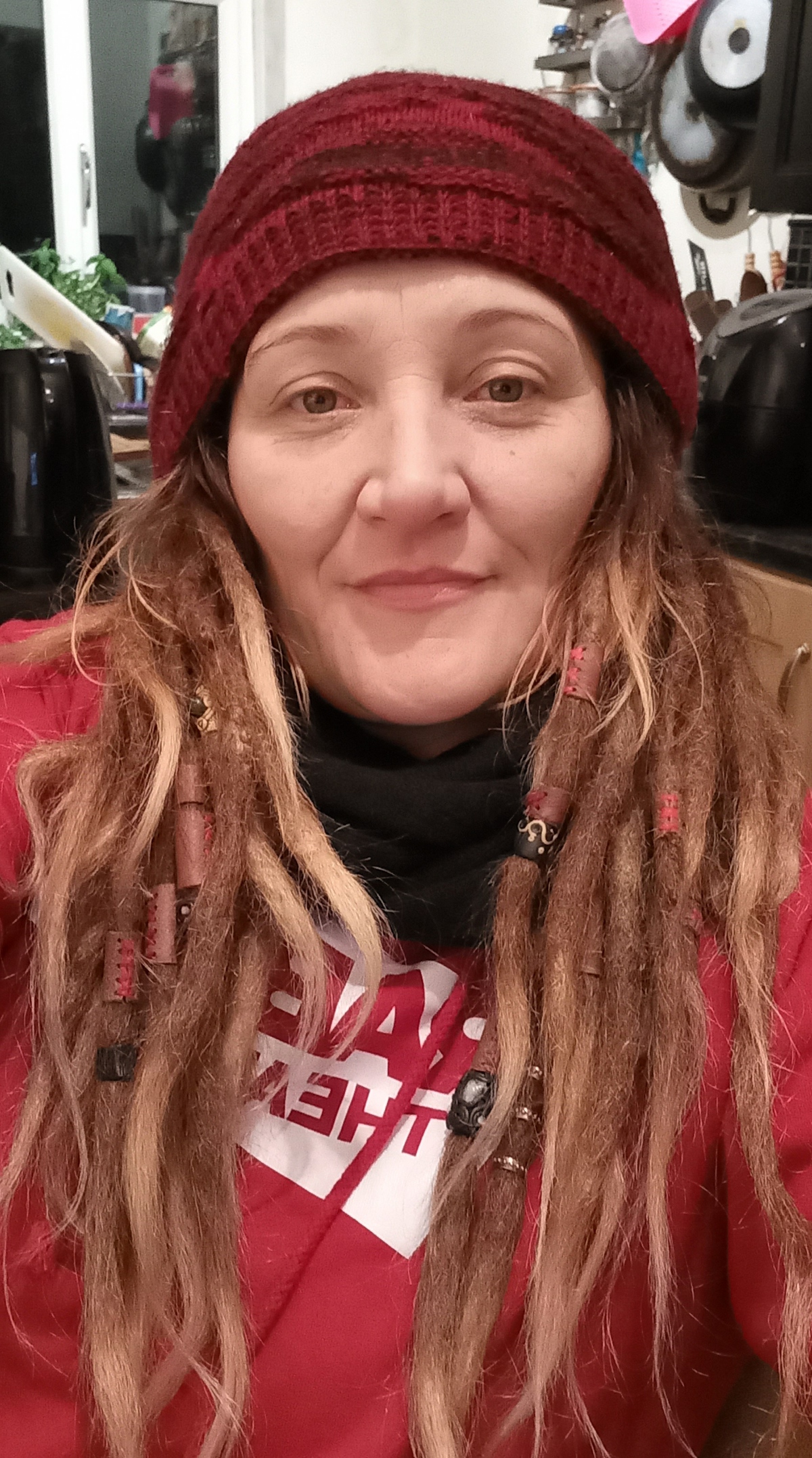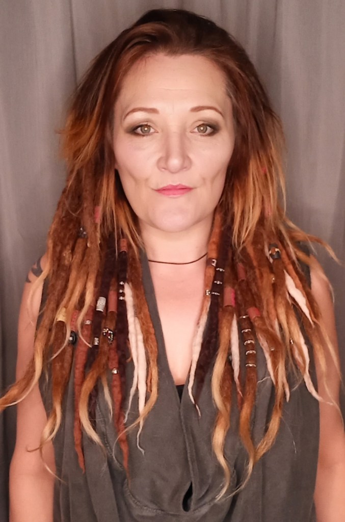 Fast forward and having left nursing behind to pursue a more creative pathway working in costumes and props she was asked to install her first head of dreadlocks.